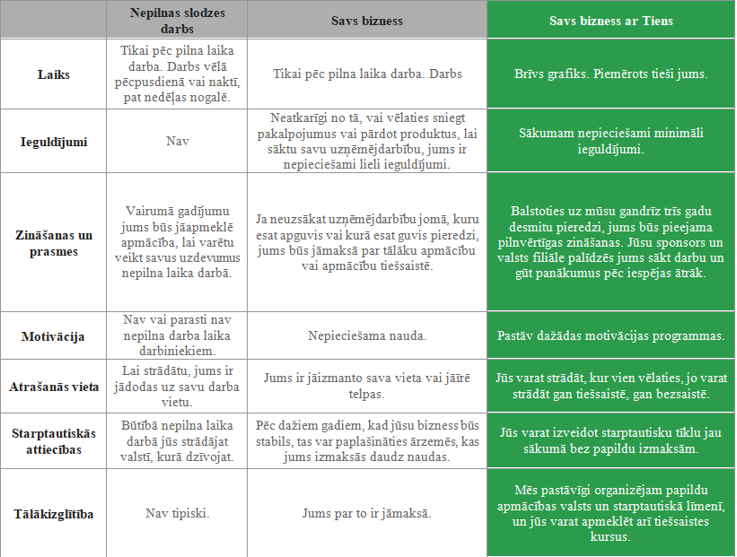 Izklausās pārāk labi, lai būtu taisnība? Izaiciniet sevi un gūstiet panākumus kopā ar mums. Jūs varat sākt savu TIENS biznesu kā papildu darbu un laika gaitā pāriet uz pilnu slodzi. Mēs atbalstīsim jūs ceļā uz jūsu veiksmes stāstu. Biznesa partneris ir lieliska iespēja visiem, neatkarīgi no tā, vai meklējat papildu ienākumus vai veidojat savu veiksmīgu biznesu.